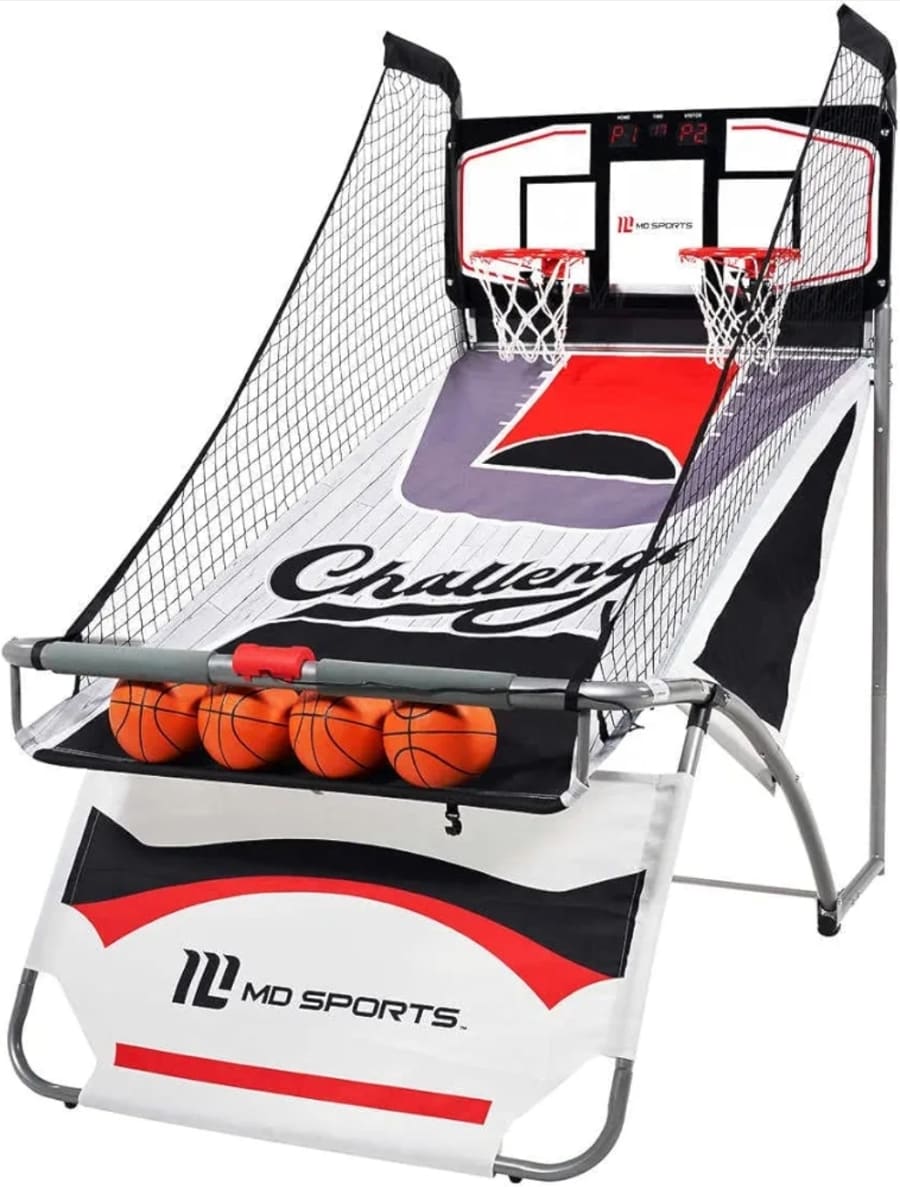 Arcade Basketball is an arcade style basketball game designed for fast fun and competitive play. It features electronic scoring, an RGB lighting package, and a foldable frame for easy storage. Play solo or head-to-head with 1 or 2 player modes. This arcade basketball game delivers authentic arcade energy in a compact friendly package.
